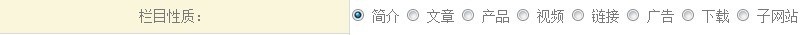 2、欄目性質(zhì):如下圖,欄目性質(zhì)選項中,選擇您要添加欄目的類型。
