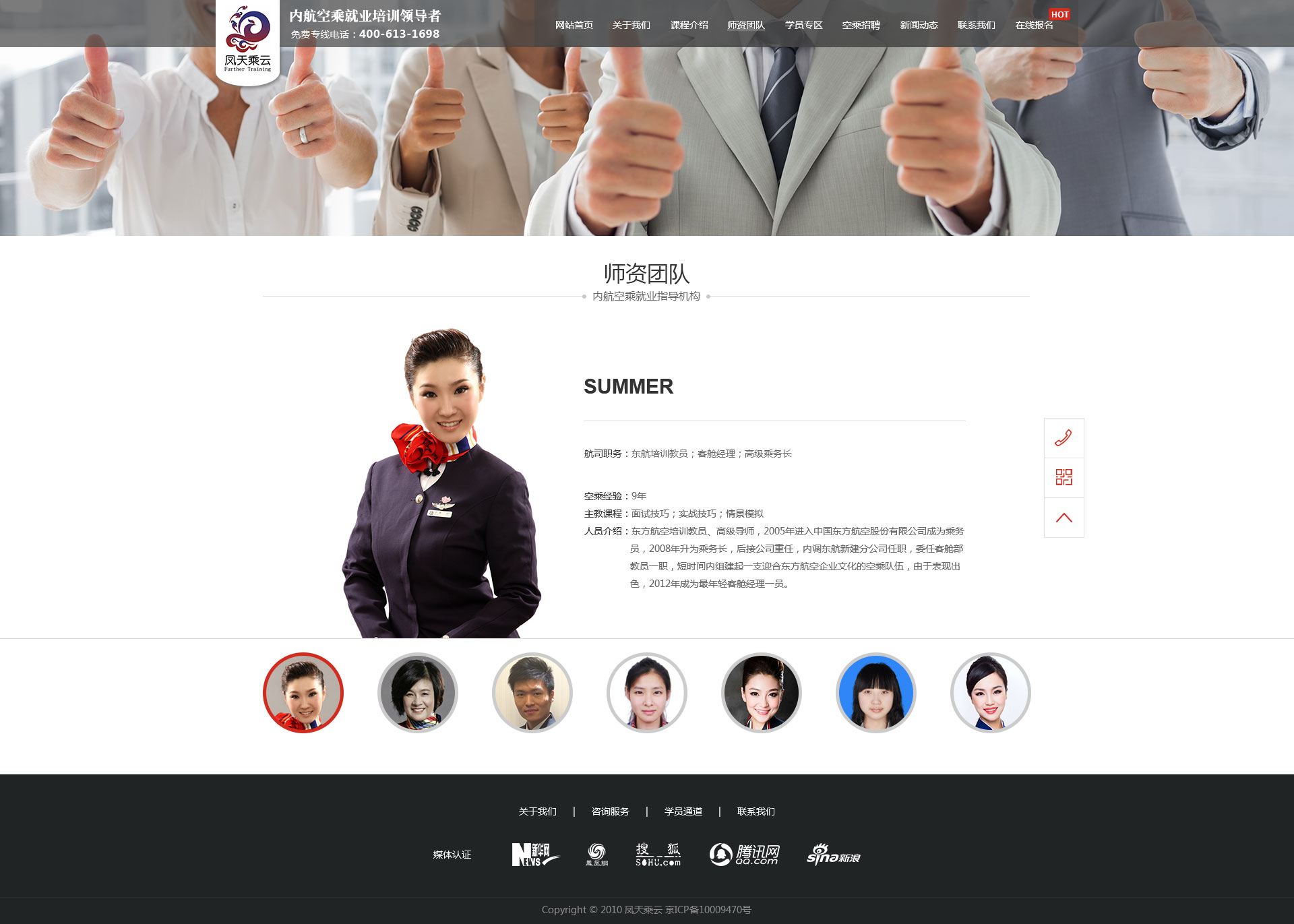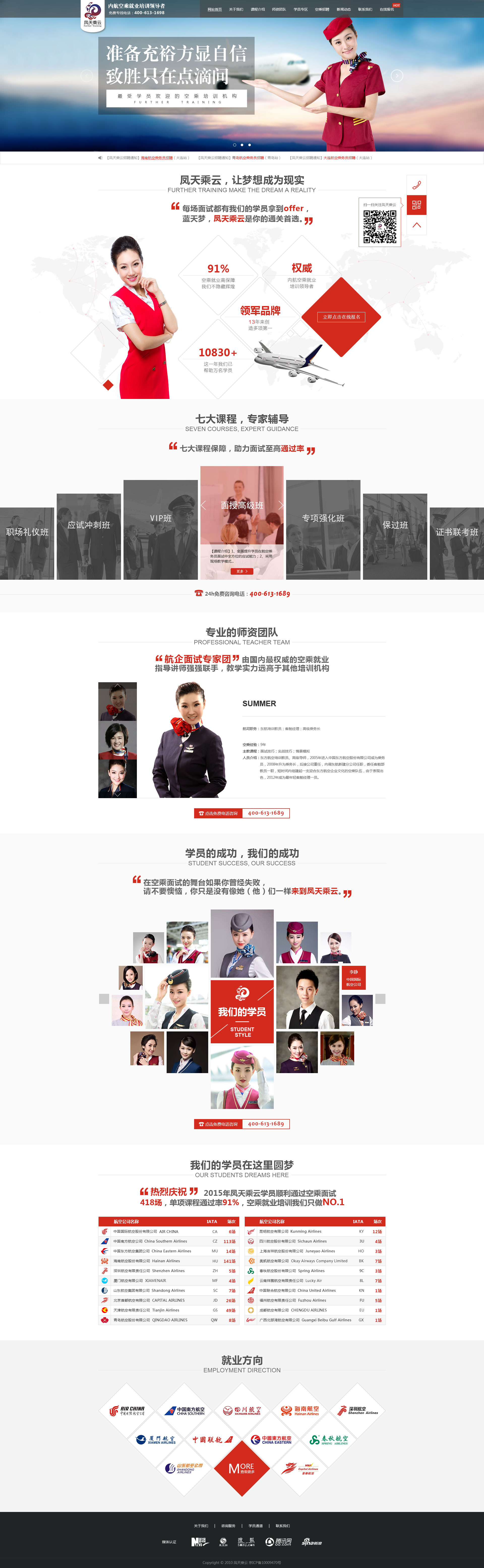 鳳天乘云是內(nèi)航空乘就業(yè)培訓(xùn)的開創(chuàng)者,全國(guó)授權(quán)開展航空服務(wù)技能培訓(xùn)的權(quán)威機(jī)構(gòu)之一。